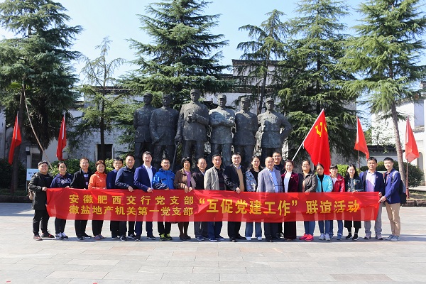 為深入貫徹落實黨的十九大精神,創新“黨員活動日”活動內容和形式,積極探索黨建工作新模式,10月26日至27日,徽鹽地產機關第一黨支部聯合合作友好單位—肥西交行黨支部赴黃山市巖寺鎮開展“互促黨建工作”聯誼活動,以“尋訪紅色足跡、瞻仰革命遺跡、緬懷黨員楷?!睘橹黝},交流國企黨建心得,提升基層黨建水平,兩個支部共26名黨員參加活動。
